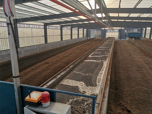 發酵槽模式生產有機肥是一種將物料置于發酵槽內,并通過槽式翻拋機械進行翻拋、攪拌及破碎,使物料發酵、腐熟、降解的一種堆肥工藝,比靜態堆肥更易得到穩定的產品性質,同時對臭味控制效果好。整體的自動化程度可以更高,節省占地。